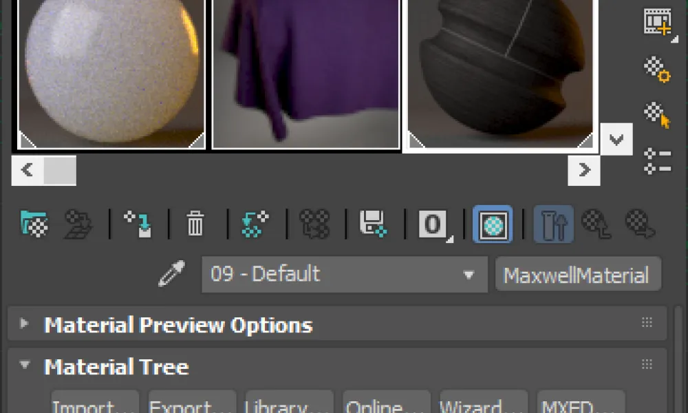3ds Maxのインターフェース内で、Maxwellのすべてのマテリアルパラメータを制御できます。カスタムマテリアル、アシスタント、参照マテリアル、オンラインマテリアルギャラリーなど、多彩なオプションが揃っています!