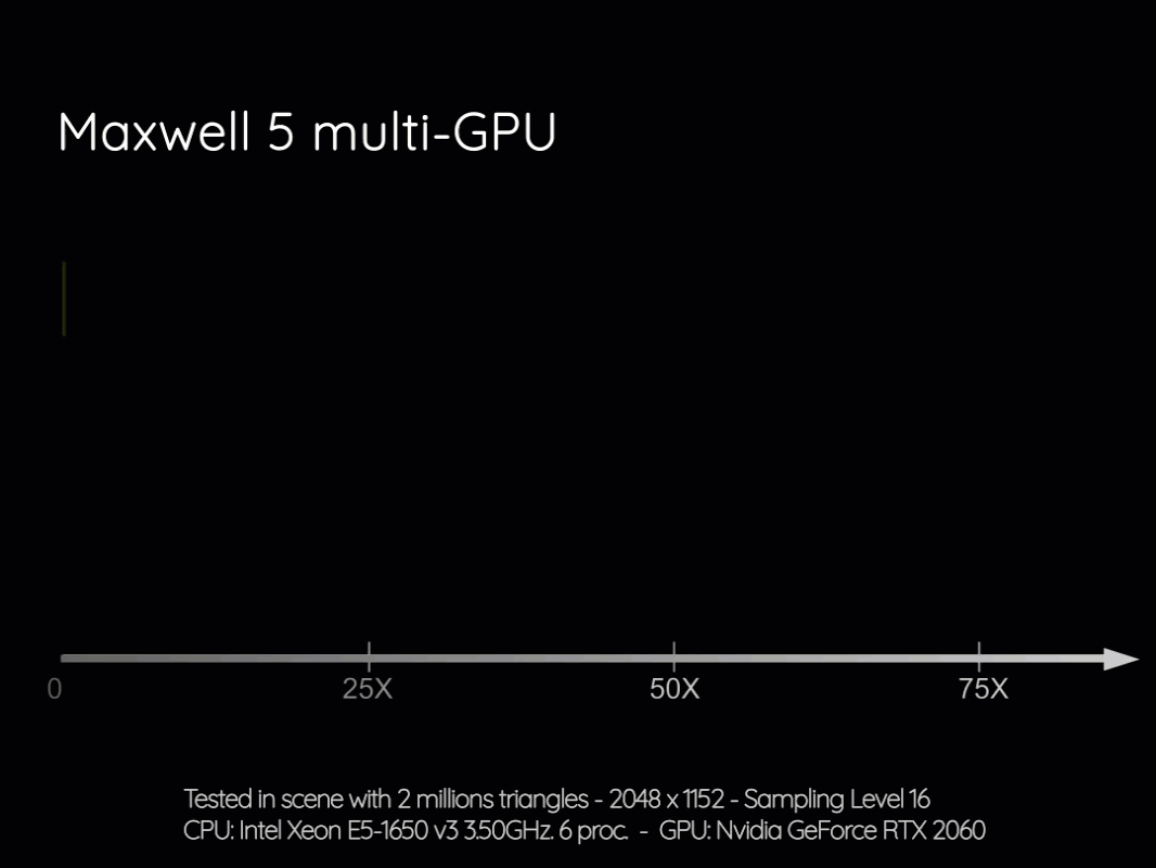 完全に新しく書き直されたマルチGPUエンジンは、ハイエンドCPUと比較して50倍以上の高速化を実現しました。ファイナルレンダリング画像を数分で、プレビューならば数秒で、物理学的な正確性を保持したまま作り出すことができます。