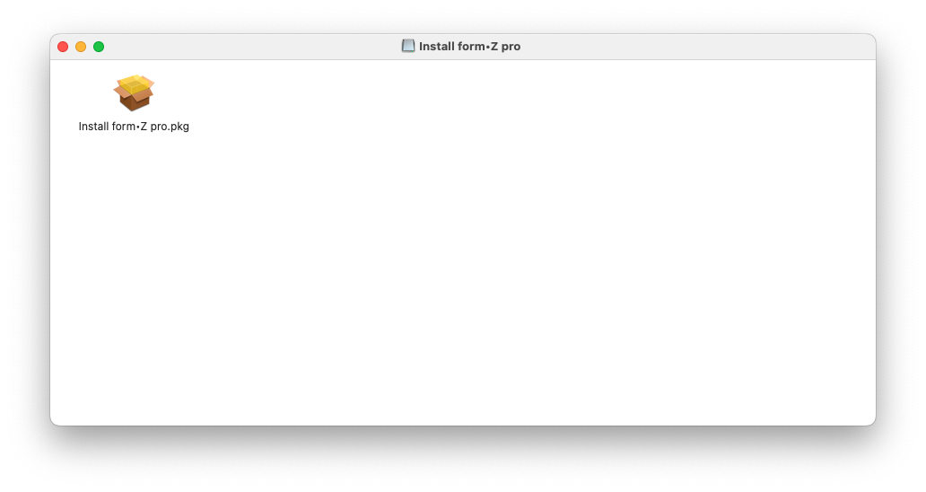 ディスクイメージをダブルクリックしてインストーラーパッケージを展開します。(※画像はformZ 10 proのディスクイメージです)