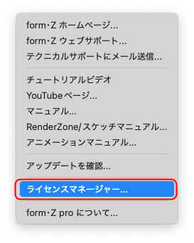 formZを起動して、ヘルプメニューからライセンスマネージャーを選択します。